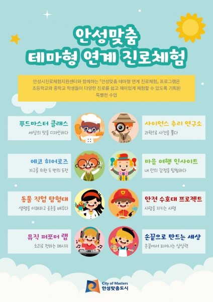 [금요저널] 안성시는 학생의 적성과 흥미를 반영한 체험 중심 진로교육을 통해 성장 잠재력 개발과 진로 역량 강화를 도모하고자 2025년 9월부터 12월까지 관내 초·중학생을 대상으로 ‘안성맞춤 테마형 연계 진로체험 프로그램’을 운영한다고 밝혔다.