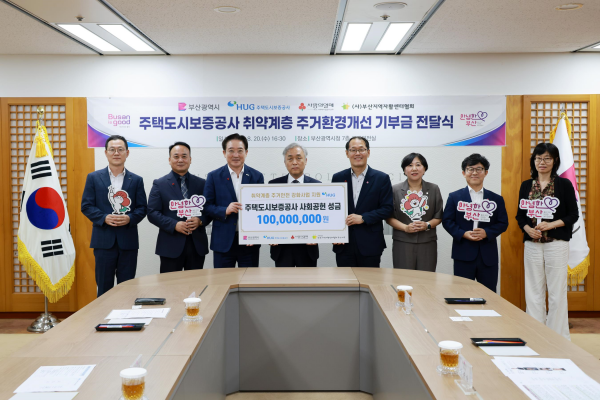 이준승 시 행정부시장은 “주택도시보증공사의 기부금은 취약계층이 안심하고 생활할 수 있는 기반을 조성하는 데 큰 도움이 될 것으로 기대한다”며 “우리시는 부산이 시민 누구나 지역사회에서 건강하고 행복한 삶을 누리는 15분 돌봄 도시가 될 수 있도록 더 노력하겠다”고 전했다.