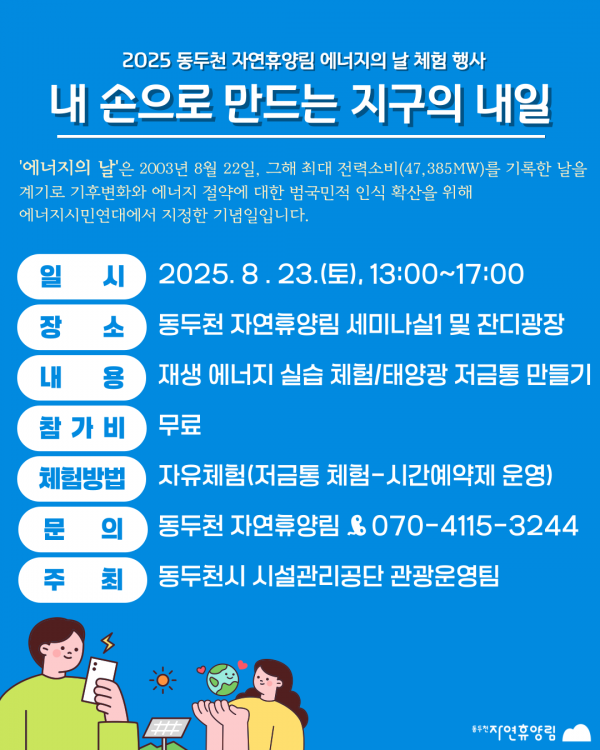 [금요저널] 동두천시 시설관리공단 자연휴양림은 ‘에너지의 날’을 맞아 오는 8월 23일 재생에너지 체험 행사를 개최한다.