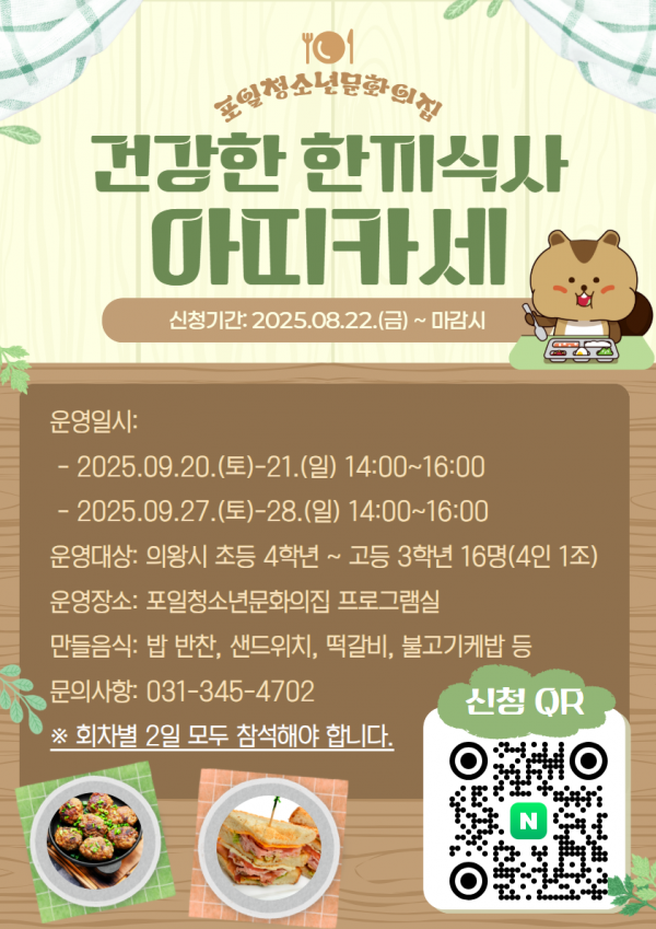 의왕시청소년재단 포일청소년문화의집, 건강한 한 끼 식사 ‘아띠카세’ 참가자 모집