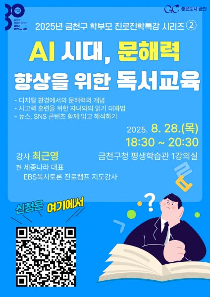 “AI시대, 문해력 향상 위한 독서교육” …금천구, 학부모 대상 특강 2탄