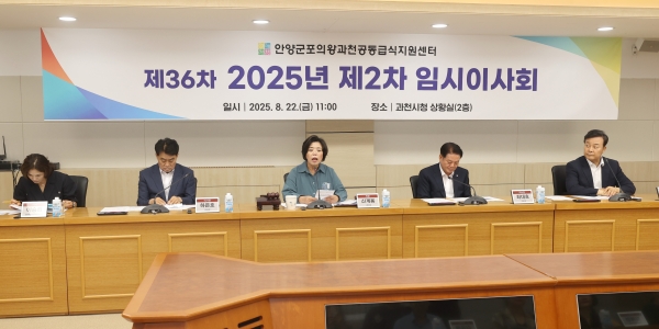 [금요저널] 재단법인 안양군포의왕과천 공동급식지원센터는 22일 과천시청 상황실에서 2025년 제2차 임시이사회를 개최했다고 밝혔다.