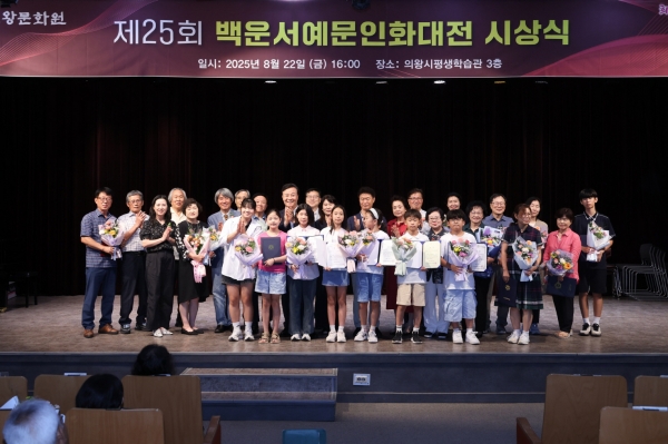 [금요저널] 의왕시는 8월 22일 시가 주최하고 의왕문화원에서 주관한 ‘제25회 백운서예문인화대전’의 시상식이 의왕평생학습관 3층 강당에서 성대하게 개최됐다고 밝혔다.