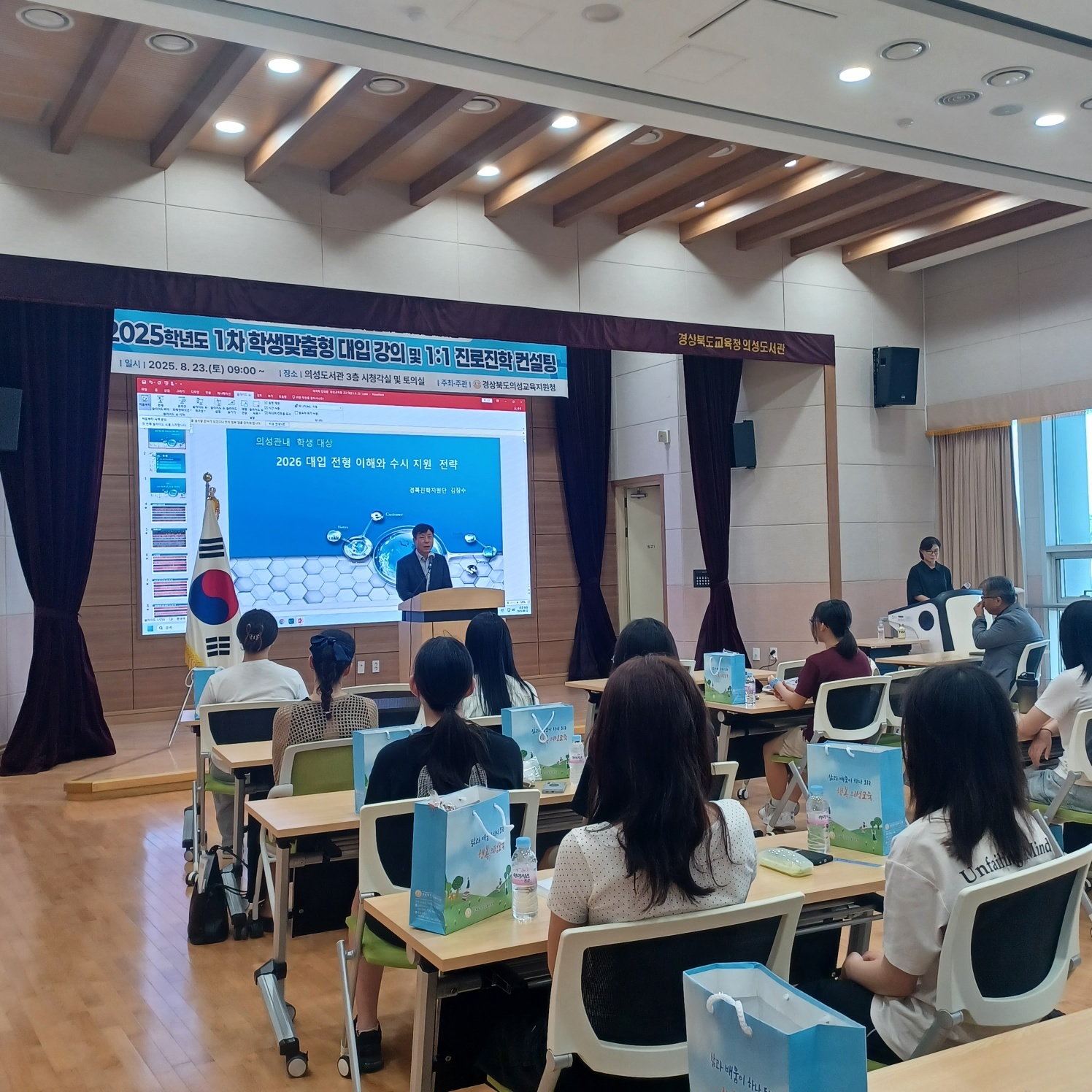 경상북도의성교육지원청(교육장 이우식)은 8월 23일(토) 09시부터 경상북도교육청 의성도서관에서 관내 고등학생과 학부모를 대상으로 경상북도교육청 진로진학지원단 교사들을 초청해 지역 학생 맞춤형 대입 강의와 1:1 진로진학 컨설팅을 진행하였다.