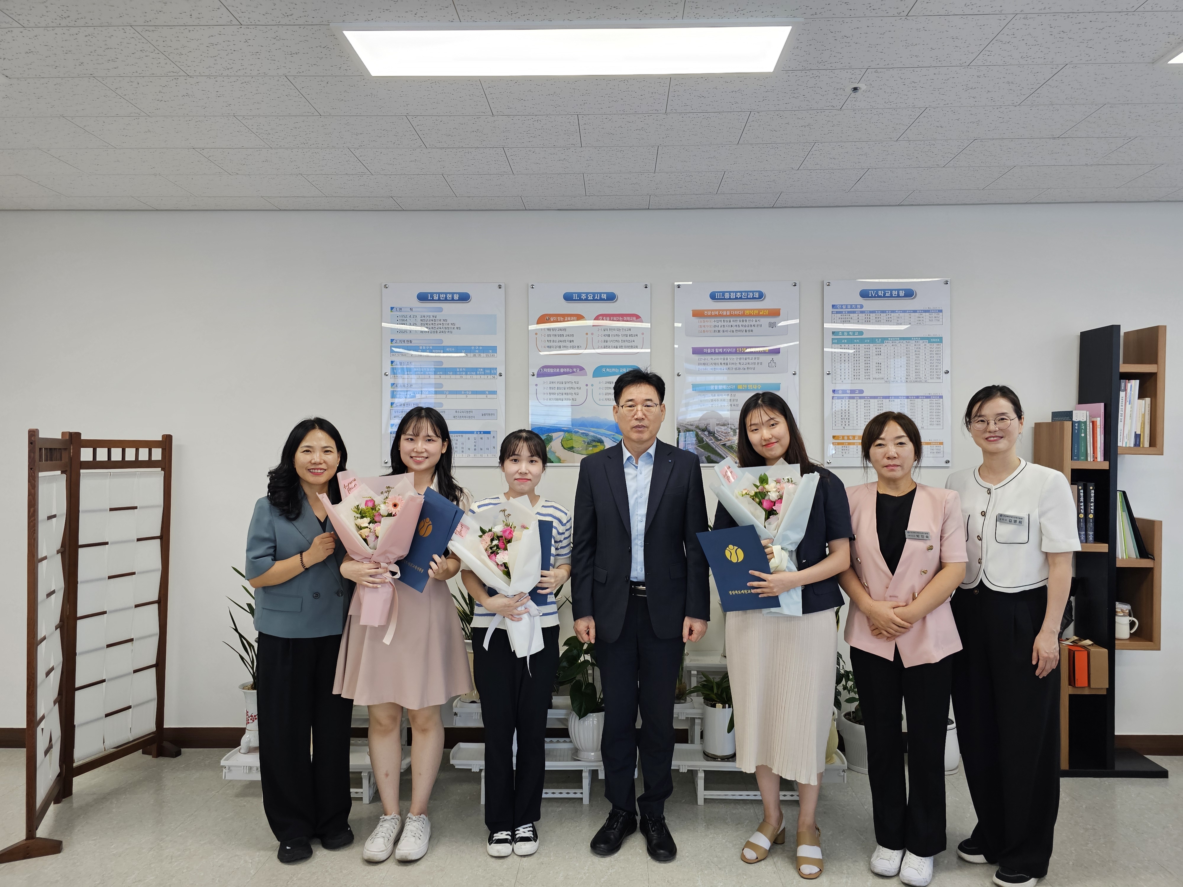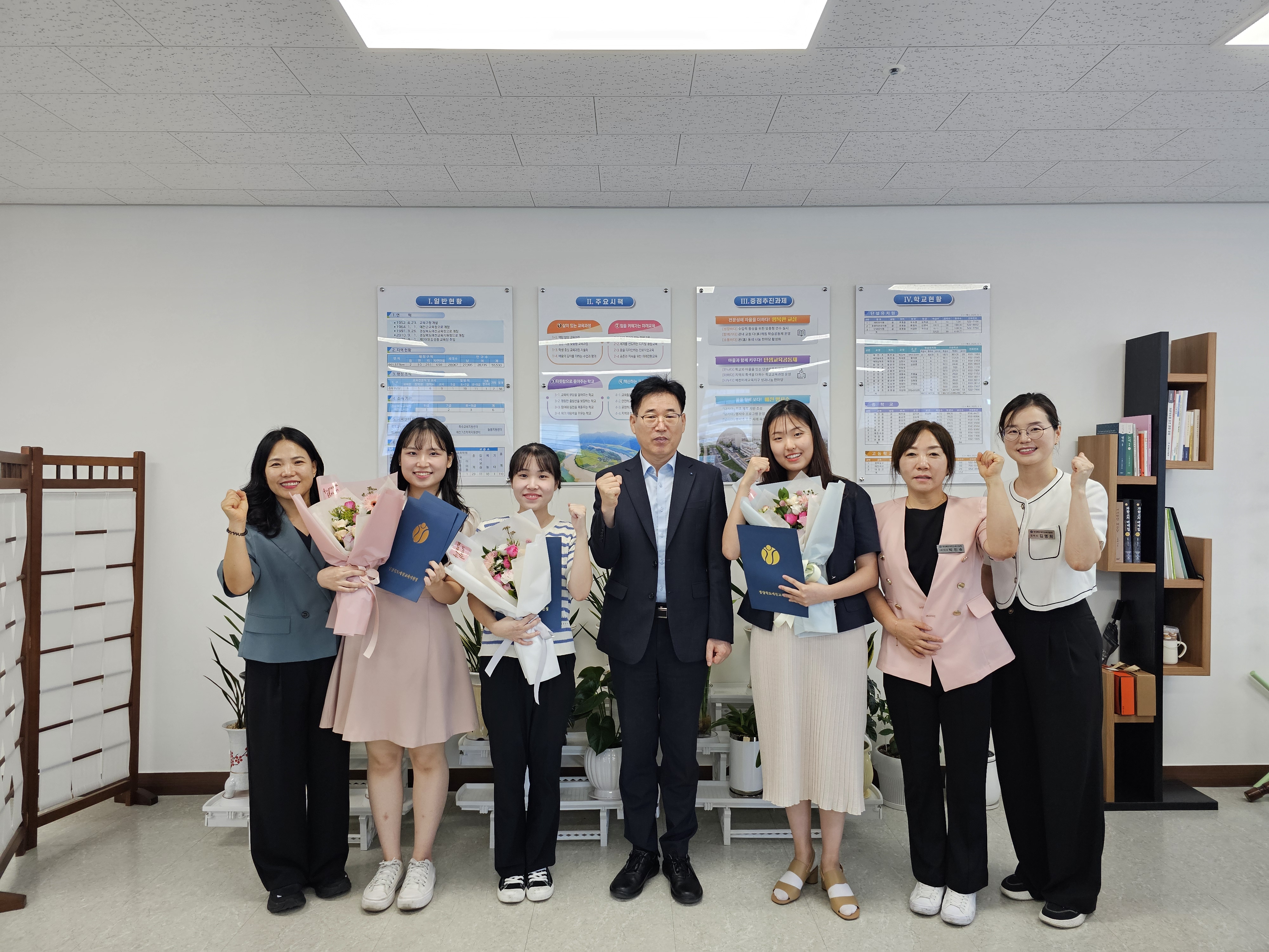김성중 교육장은 “행복한 교직의 첫걸음을 예천에서 시작하게 됨을 진심으로 축하하며, 아이들과 함께하는 행복한 교직 생활을 통해 고소미 예천교육의 미래를 함께 열어가길 바란다.”고 전했다. 또한, “오늘의 다짐을 늘 가슴에 새기고, 사랑과 정성으로 아이들을 가르치는 따뜻한 참스승으로 성장해 주기를 기대한다.”고 당부했다.