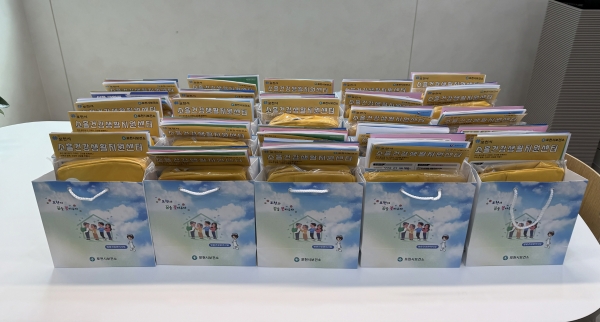 건강꾸러미에는 보랭주머니, 벌레 기피제, 영양제, 파스 등 여름철 필수품과 건강 정보 홍보 책자가 포함되어 있다.