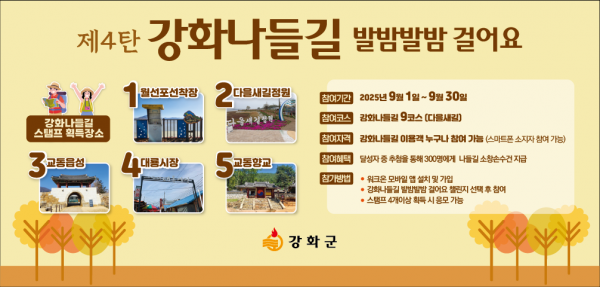 강화군, 교동도 가을길 함께 걸어요… 강화나들길 발밤발밤 걸어요 챌린지 진행