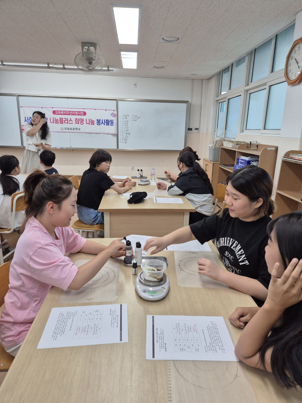 연일초등학교(교장 임정훈)는 학생맞춤통합지원(교육복지)사업의 일환으로 2025년 8월 23일 4~6학년 구성된 나눔플러스 봉사 동아리 20명이 참여한 가운데 천연 샴푸바를 직접 만들어 소소한 제로웨이스트를 실천하는 봉사활동을 실시했다.