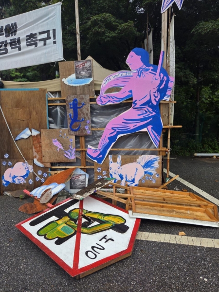 [금요저널] 동두천 옛 성병관리소 철거 반대 농성장이 농성 1년을 앞둔 26일 새벽 삽을 들고 찾아온 60대 남성에 의해 천막이 찢어지고 구조물이 파손되는 등 피해를 당한 것에 대해 “이는 사실상 철거를 강행하고자 하는 동두천시에 맞선 시민들을 향한 테러 행위”며 강하게 비판한 뒤, “올여름 두 차례 농성장에서 야간 당직 농성을 진행했는데, 어쩌면 그 피해자가 본 의원일 수도 있었다”며 이러한 테러 행위에 대한 경찰의 적극적인 수사를 요청했다.