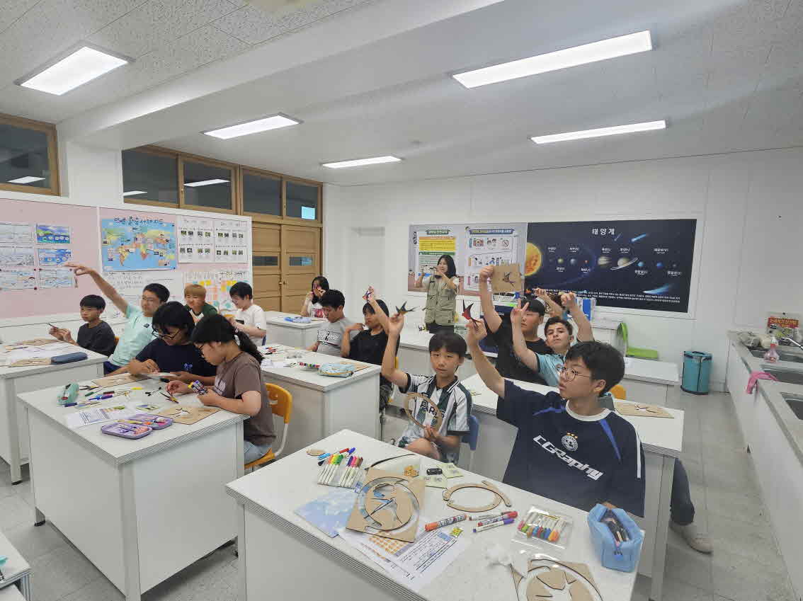 □ 이번 활동에서 학생들은 ‘우리 학교에서 기후변화 생물지표종을 찾아라!’라는 주제로 기후변화와 생물다양성의 중요성을 이해하는 시간을 가졌다. 특히 조류를 중심으로 기후변화 생물지표종을 살펴보고, 학교 주변에서 탐조 활동을 체험하였다. 망원경 사용법을 익힌 뒤 직접 새들을 관찰하며 생태적 호기심을 키웠으며, 제비 키링 제작 활동을 통해 주변 생물에 대한 관심과 흥미도 높였다.