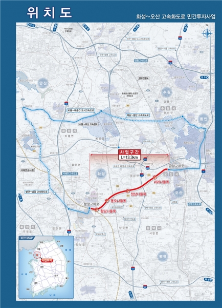 정명근 화성특례시장은 “화성~오산 고속화도로는 화성특례시의 동서축 주간선도로망으로서 기존 국지도와 지방도의 과밀 교통 수요를 효율적으로 분산시키고 교통 흐름을 크게 개선할 것”이라며 “일반구 체제 출범과 더불어 관내 30분 이동 시대 실현을 위해 사업을 차질 없이 추진하겠다”고 강조했다.