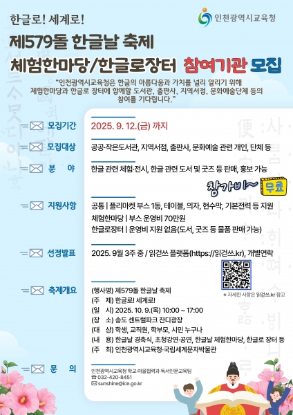 인천광역시교육청, 제579돌 한글날 축제 참여 기관 모집