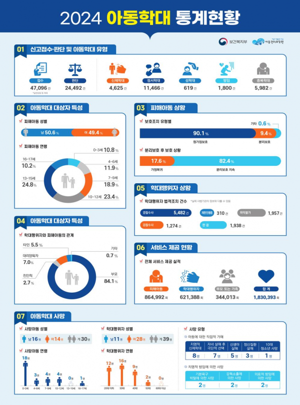 [금요저널] 보건복지부는 ‘2024년 아동학대 연차보고서’를 발간해 8월 29일 국회 보건복지위원회에 제출했다고 밝혔다.