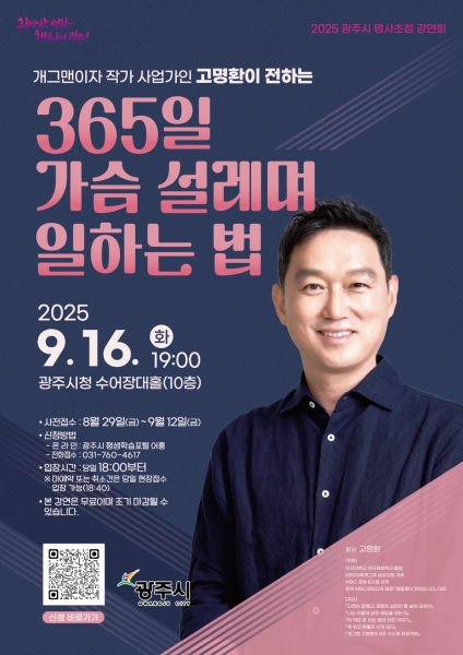 [금요저널] 광주시는 오는 16일 오후 7시, 광주시청 10층 수어장대홀에서 ‘2025년 제2회 명사 초청 강연회’를 연다고 2일 밝혔다.