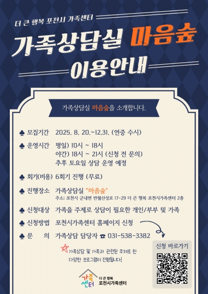 포천시가족센터, 가족상담실 ‘마음숲’ 운영