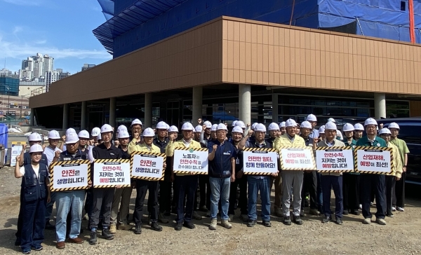 [금요저널] 경기도의회 경제노동위원회 정하용 의원은 3일 용인시 기흥구 중동에 위치한 동백종합복지회관 신축현장에서 열린 ‘9월 노동안전의 날’ 행사에 참석해 산업현장의 안전 실태를 점검하고 근로자의 생명과 건강을 지키기 위한 활동에 함께했다.