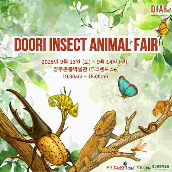 [금요저널] 양주시는 오는 13일부터 14일까지 지역 내 양주곤충박물관 2층에서 ‘두리랜드’ 와 ‘양주곤충박물관’ 이 공동 주최하는 ‘두리 인섹트 애니멀 페어 2025’ 가 개최된다고 밝혔다.