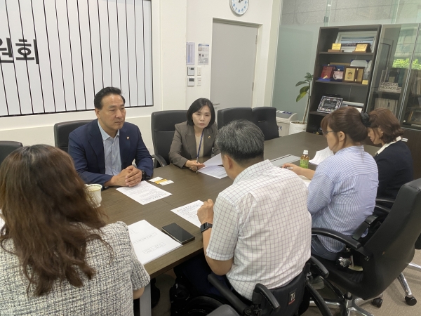 [금요저널] 경기도의회 보건복지위원회 황세주 부위원장와 김용성 의원는 3일 경기도의회에서 한국척수장애인협회 경기도협회와 정담회를 열고 중도장애인 지원을 위한 제도적 방안을 논의했다.