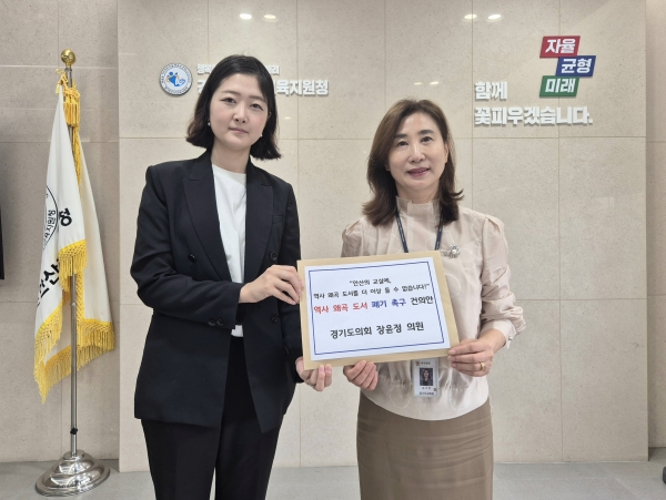 [금요저널] 경기도의회 교육기획위원회 장윤정 의원은 8일 안산교육지원청을 방문해 학교도서관에 비치된 역사 왜곡 논란 도서의 즉각적인 폐기와 재발 방지를 위한 철저한 검증 절차 마련을 촉구하는 건의안을 전달했다.