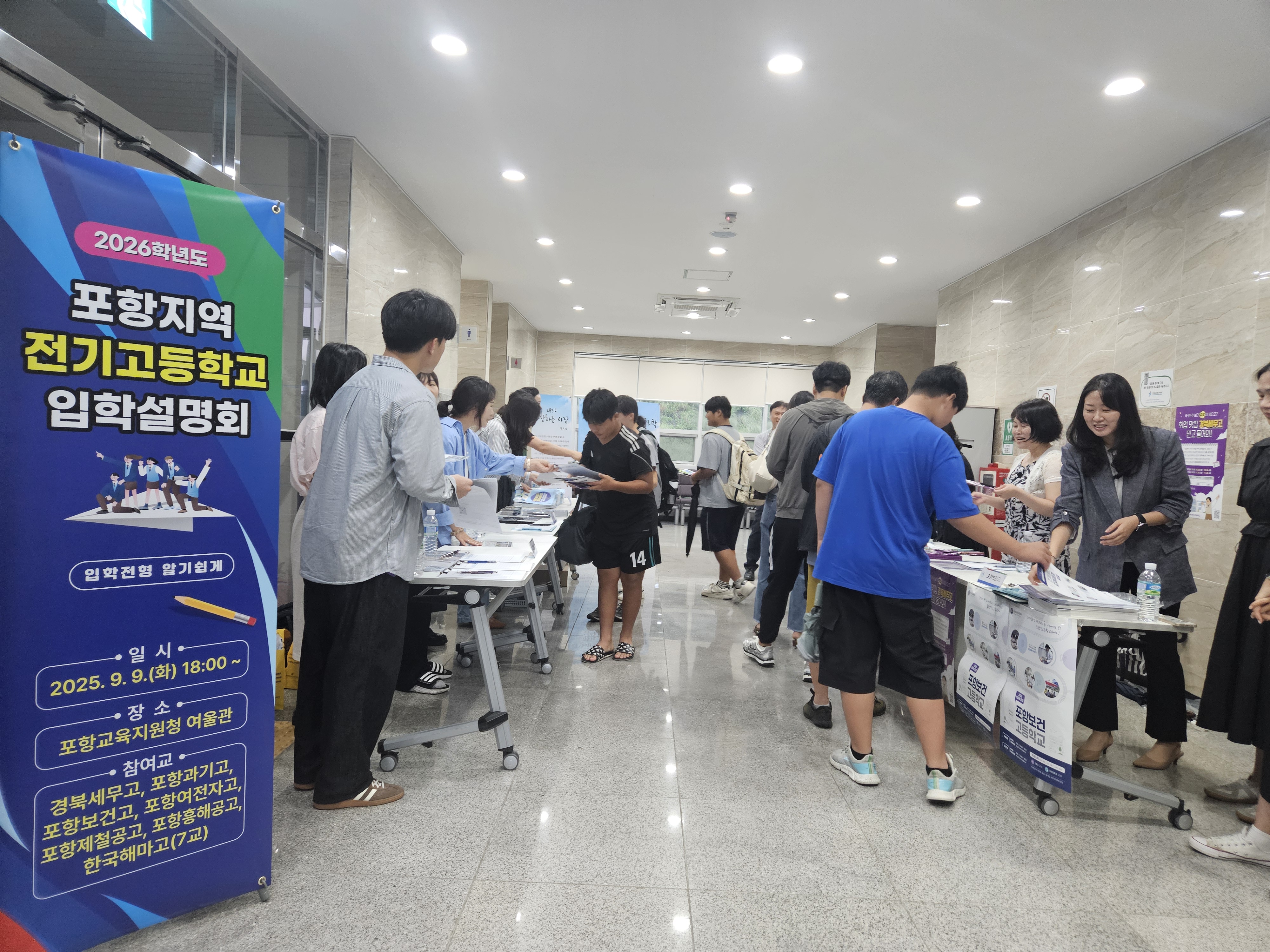 포항교육지원청(교육장 최한용)은 9월 9일(화) 18:30 포항교육지원청 여울관에서 전기고등학교 입학설명회를 개최하였다. 본 설명회는 포항지역 중학교 3학년 학생 및 학부형을 대상으로 하였으며, 효율적인 전기고등학교 입학정보 제공이 목적이다.