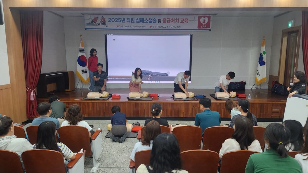 □ 경상북도교육청 구미도서관(관장 최선지)은 9월 10일(수)에 도서관 시청각실에서 전 직원들 대상으로 심폐소생술(CPR) 및 응급처치 교육을 실시했다.
