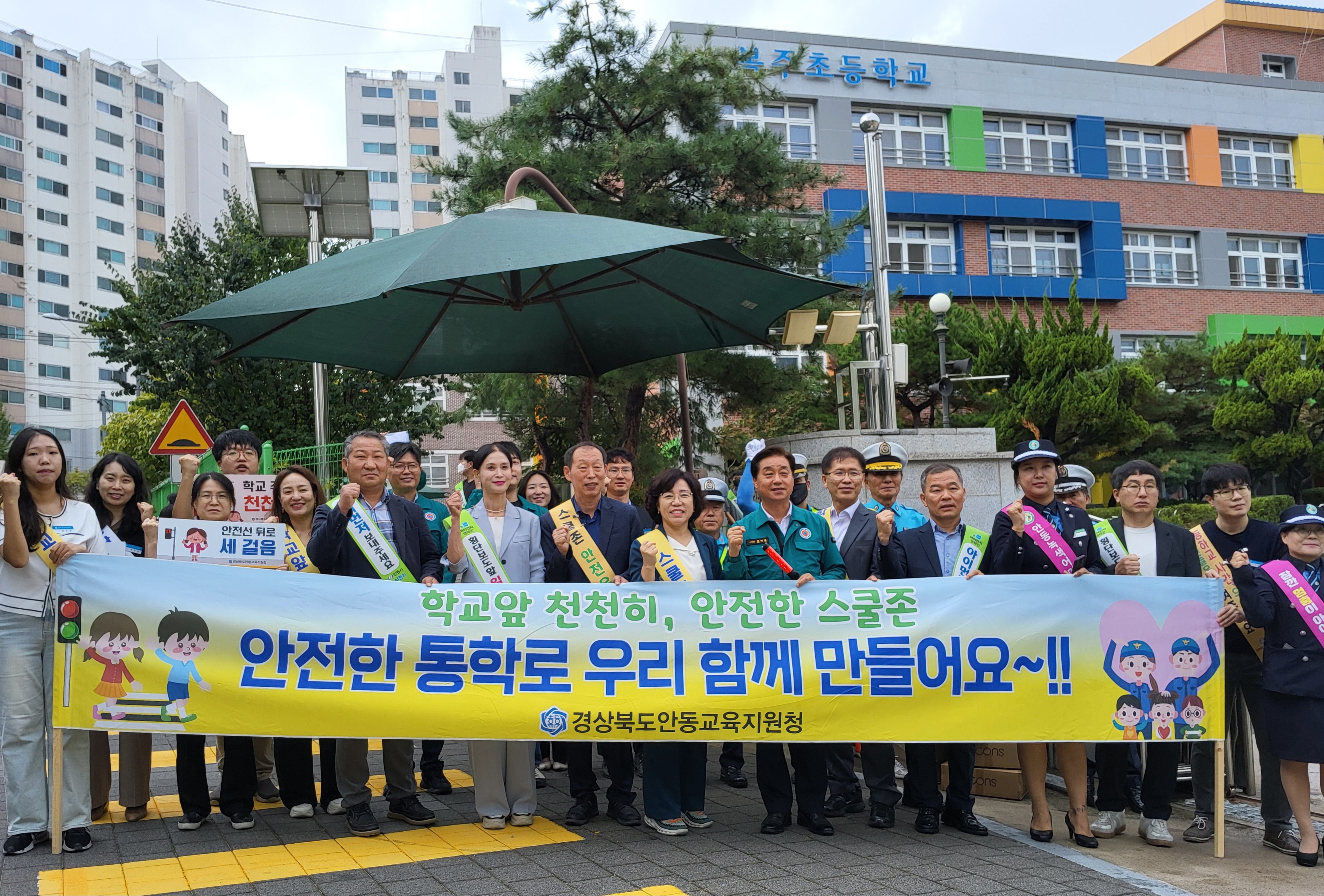 □ 경상북도안동교육지원청(교육장 홍성중)은 2025년 9월 10일(수) 오전 8시부터 8시 40분까지 안동 복주초등학교 스쿨존 및 정문 후문 일원에서 ‘아이먼저’어린이 안전 캠페인을 실시하였다.