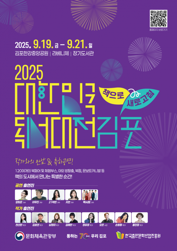 [금요저널] 김포시는 오는 9월 19일부터 21일까지 3일간 김포한강중앙공원, 라베니체, 장기도서관 등 김포 전역에서 ‘2025 대한민국 독서대전’을 개최한다.