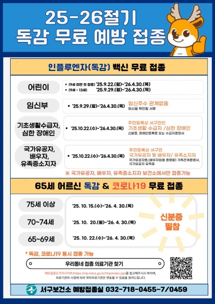 인천 서구, 25-26절기 인플루엔자 무료 예방접종 실시
