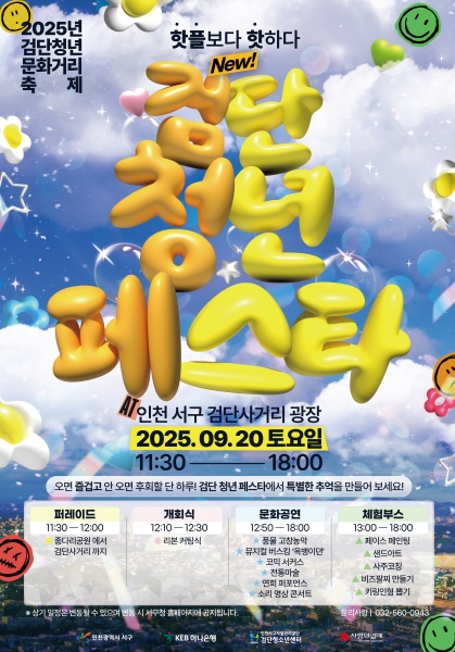 구 관계자는 “검단 청년 페스타는 청년 예술인들이 직접 참여하며 지역 사회 문화를 만들어 가는 행사”며 “이번 축제를 통해 검단이 청년 문화의 새로운 중심지로 자리 잡기를 기대한다”고 전했다.