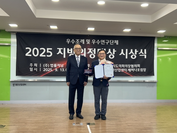 한편 이번 2025 지방의정대상은 기초의회, 광역의회 대상 각 1명에 이어 최우수상 3명 등 입법활동부문 총 39명의 수상자를 선정했으며 허훈 의원은 지난 2023년에도 우수상을 수상한 바 있다.