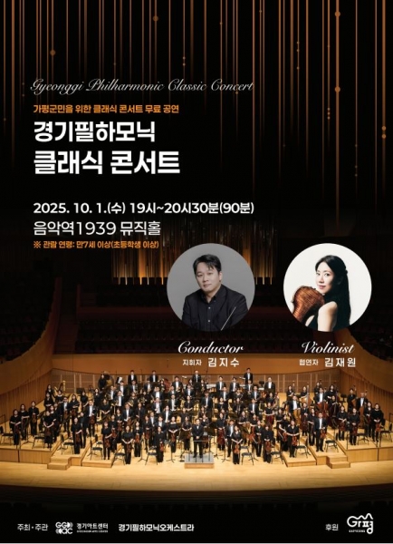 [금요저널] 가평군은 오는 10월 1일 경기아트센터, 경기필하모닉오케스트라와 함께 음악역1939 뮤직홀에서 ‘경기필하모닉 클래식 콘서트’를 개최한다.