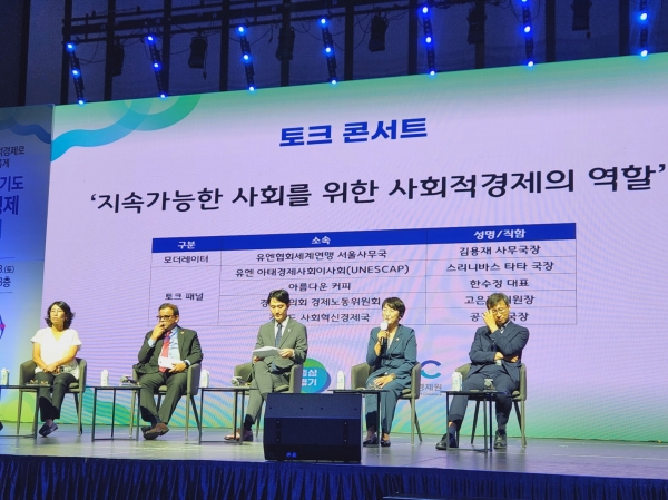 이번 콘퍼런스에서는 유엔사회연대경제실무그룹 시멜 에심 의장이 기조연설을 맡고 유엔아태경제사회이사회 스리니바스 타타 국장 주제연설, 아름다운커피 한수정 대표는 사례 발표를 진행했다.