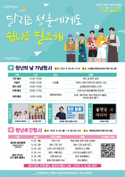[금요저널] 인천광역시 계양구는 청년의 날을 맞아, 오는 9월 20일부터 26일까지 청년주간행사를 운영한다고 밝혔다.