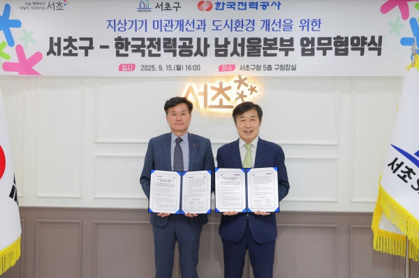 [금요저널] 서울 서초구가 15일 서초구청에서 한국전력 남서울본부와 ‘지상기기 미관 개선과 도시환경 개선을 위한 업무협약’을 체결했다고 밝혔다.