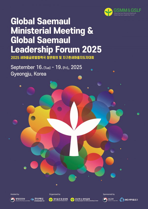 [금요저널] 행정안전부는 9월 16일부터 9월 19일까지 대한민국 역사문화의 도시이자 ‘2025 아시아·태평양경제협력체 정상회의’ 개최지인 경상북도 경주에서 ‘2025 새마을글로벌협력국 장관회의 및 지구촌새마을지도자대회’를 개최한다고 밝혔다.