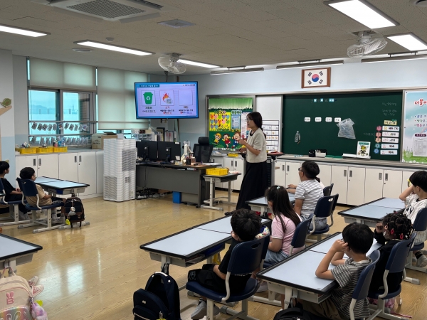 프로그램은 자원순환 강사가 교실을 직접 방문해 재활용 분리배출과 자원순환의 중요성 등에 대해 80분간 수업하는 방식으로 운영됐다.