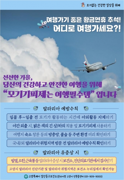 [금요저널] 고양특례시 일산동구보건소는 긴 추석 황금연휴를 맞이해 가족들과 국내외 여행을 가는 시민들의 말라리아 예방수칙 준수를 당부했다.