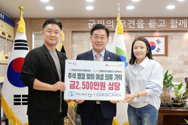 전진선 양평군수는 “소중한 물품을 후원해 주신 더베오와 지아스카라에 깊이 감사드린다”며 “이러한 선한 영향력이 많은 기업과 지역사회에 큰 울림이 되어 지역 곳곳에 희망과 온정을 전하는 원동력이 되길 기대한다”고 화답했다.