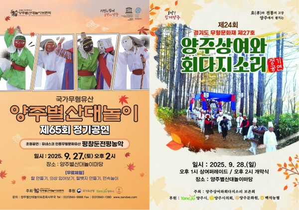 [금요저널] 양주시가 오는 9월 27일과 28일 이틀간 양주별산대놀이마당에서 지역 대표 무형유산 정기공연을 연이어 개최한다.