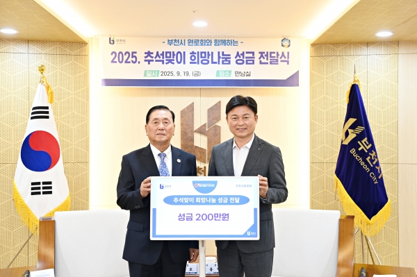[금요저널] 부천시는 지난 19일 부천시청 만남실에서 부천시 원로회가 추석을 앞두고 희망나눔 성금 200만원을 전달했다고 밝혔다.