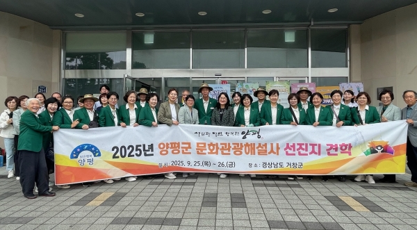 [금요저널] 양평군은 지난 25일부터 26일까지 양평군 문화관광해설사와 군 관계자들이 경상남도 거창군을 방문해 우호 교류 활동과 선진지 견학을 진행했다고 밝혔다.