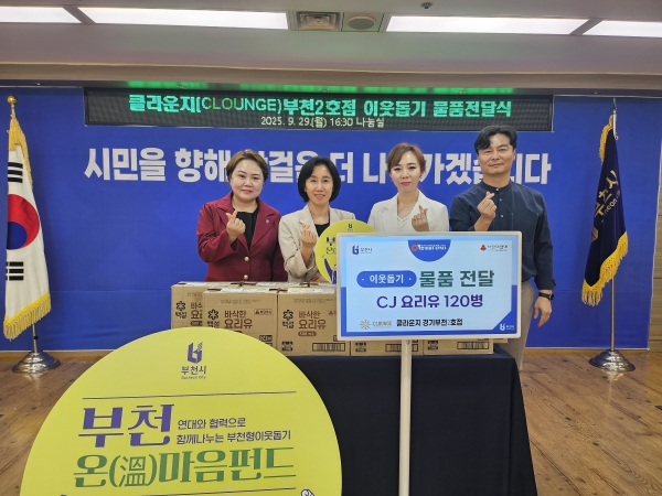 이번 기탁은 관내 소외계층의 식생활 안정을 돕기 위한 것으로 클라운지 경기부천2호점은 CJ요리유 10박스 총 120병을 부천시에 전달했다.