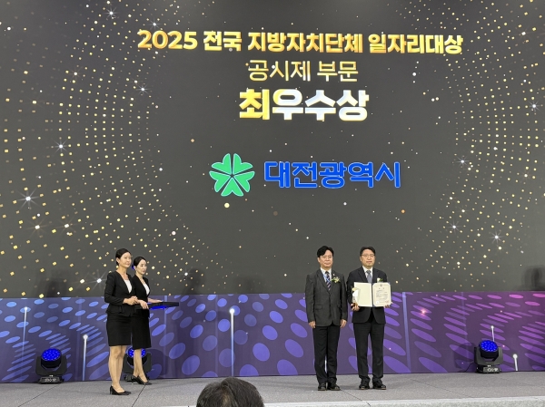 [금요저널] 대전시는 30일 청주 오스코에서 열린 고용노동부 주관 ‘2025 전국 지방자치단체 일자리대상’ 시상식에서 △일자리 공시제 부문 최우수상 △우수사업 부문 우수상을 동시에 받으며 4년 연속 수상의 영예를 안았다.