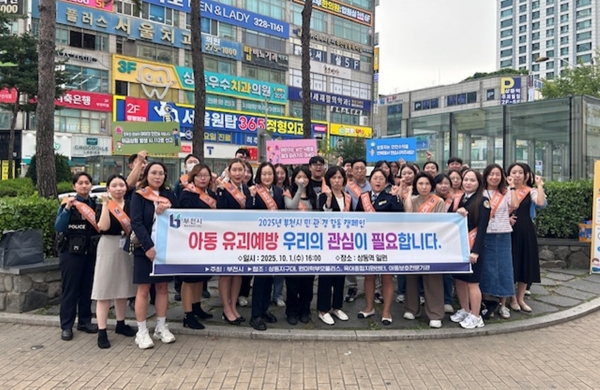 정애경 부천시 복지국장은 “초등학교 주변 아동보호구역 지정으로 안전 기반을 마련한 데 이어 이번 캠페인을 통해 시민과 함께 예방활동과 지역 안전망을 더욱 강화하겠다”며 “앞으로도 경찰, 교육기관, 지역사회와 긴밀히 협력해 아동이 안전하고 행복하게 성장할 수 있는 도시를 만들겠다”고 말했다.