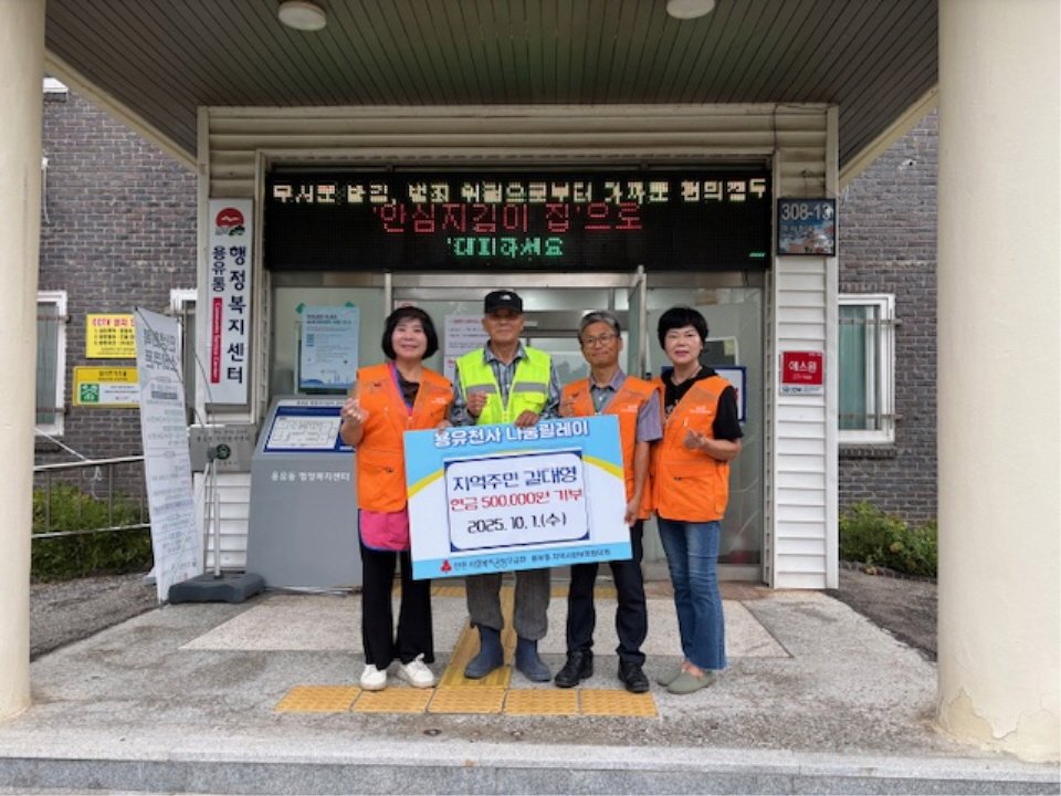 [금요저널] 인천 중구 용유동 지역사회보장협의체(공동위원장 김상중, 강동규)는 최근 용유동 주민 길대영 씨가 현금 50만원을 기탁했다고 14일 밝혔다.