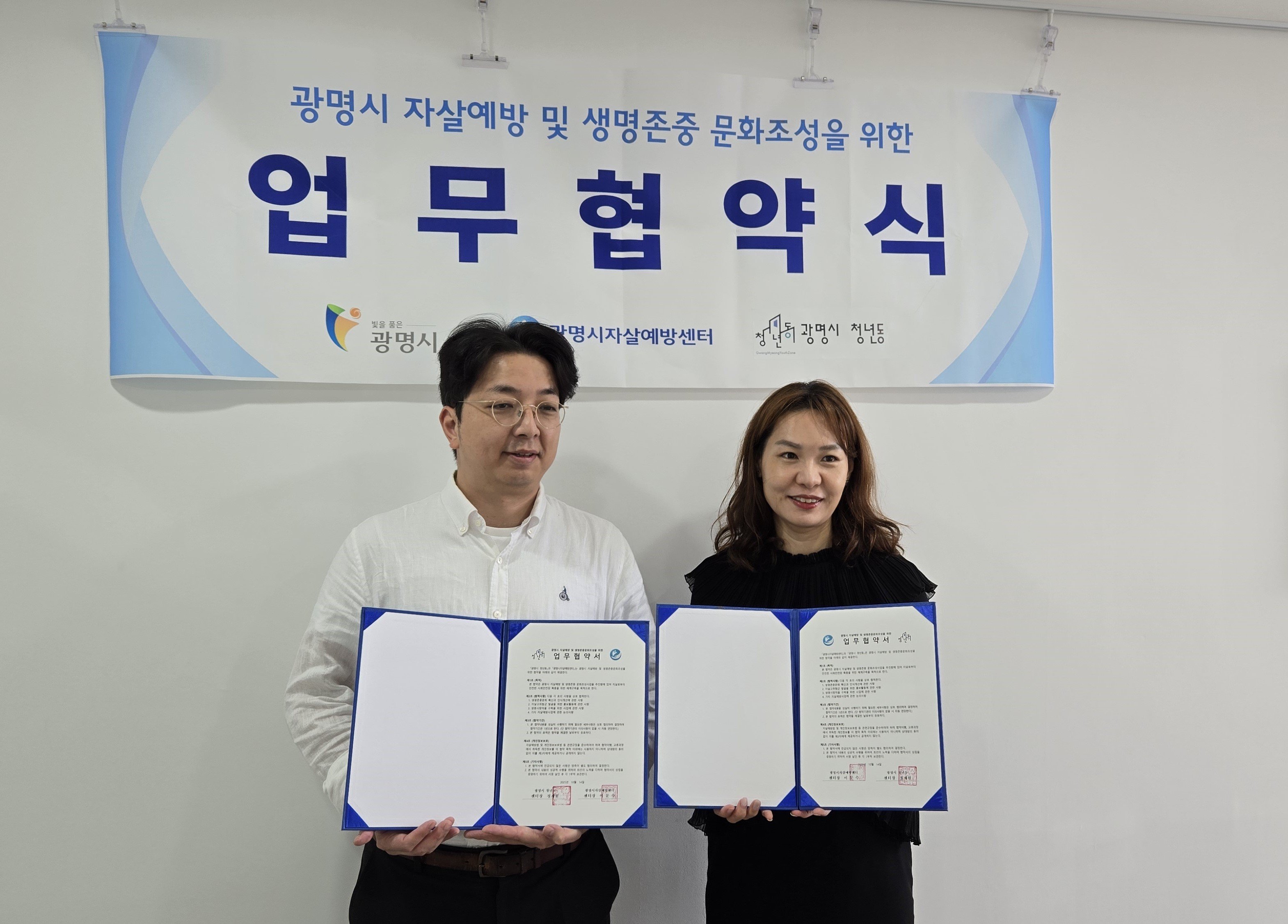 양 기관은 14일 광명시 청년동에서 청년 정신건강 증진 및 자살예방을 위한 업무협약(MOU)을 체결했다.