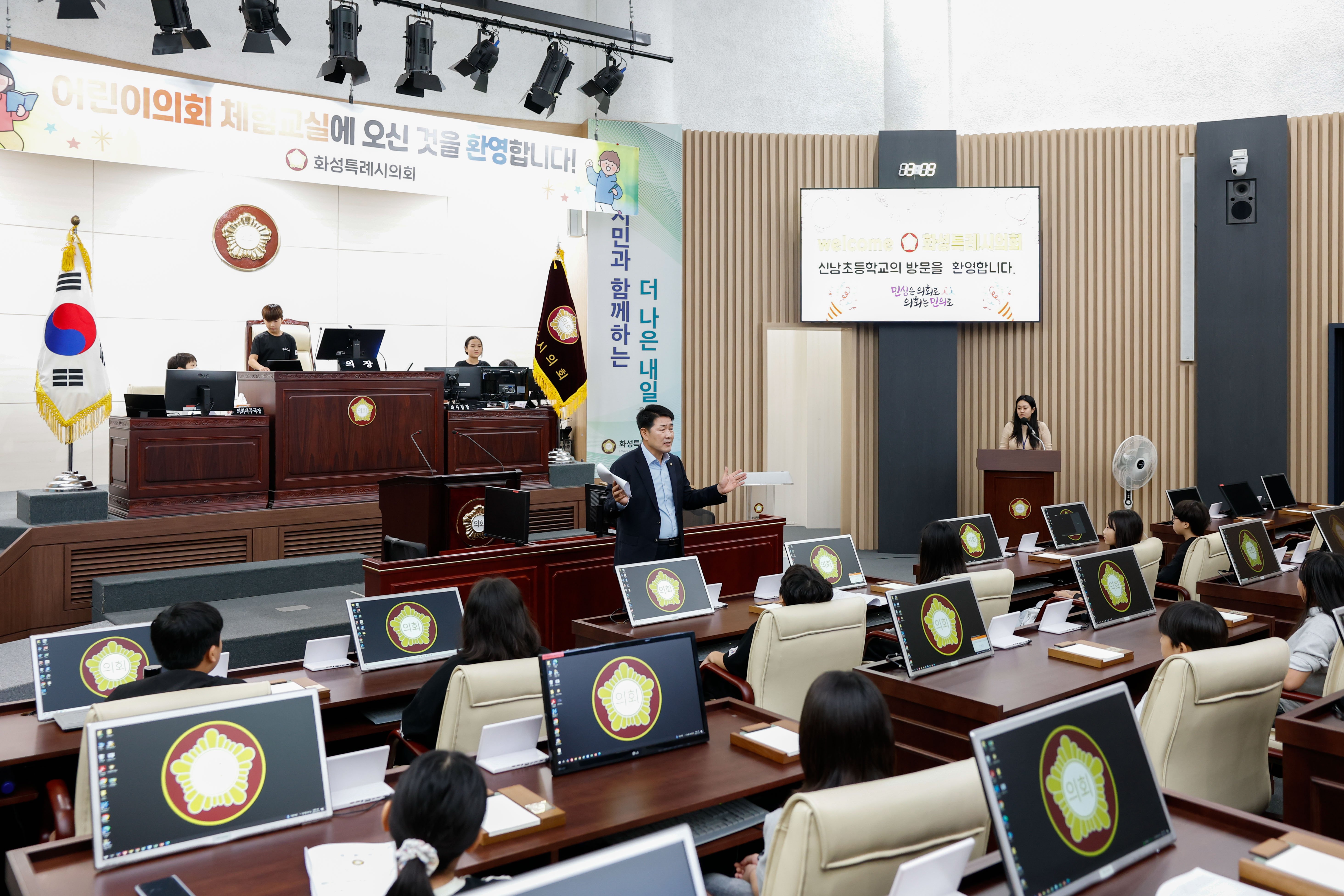 [금요저널] 화성특례시의회(의장 배정수)는 13일 남양읍에 위치한 신남초등학교 학생들을 대상으로 ‘어린이의회 체험 교실’을 운영했다.