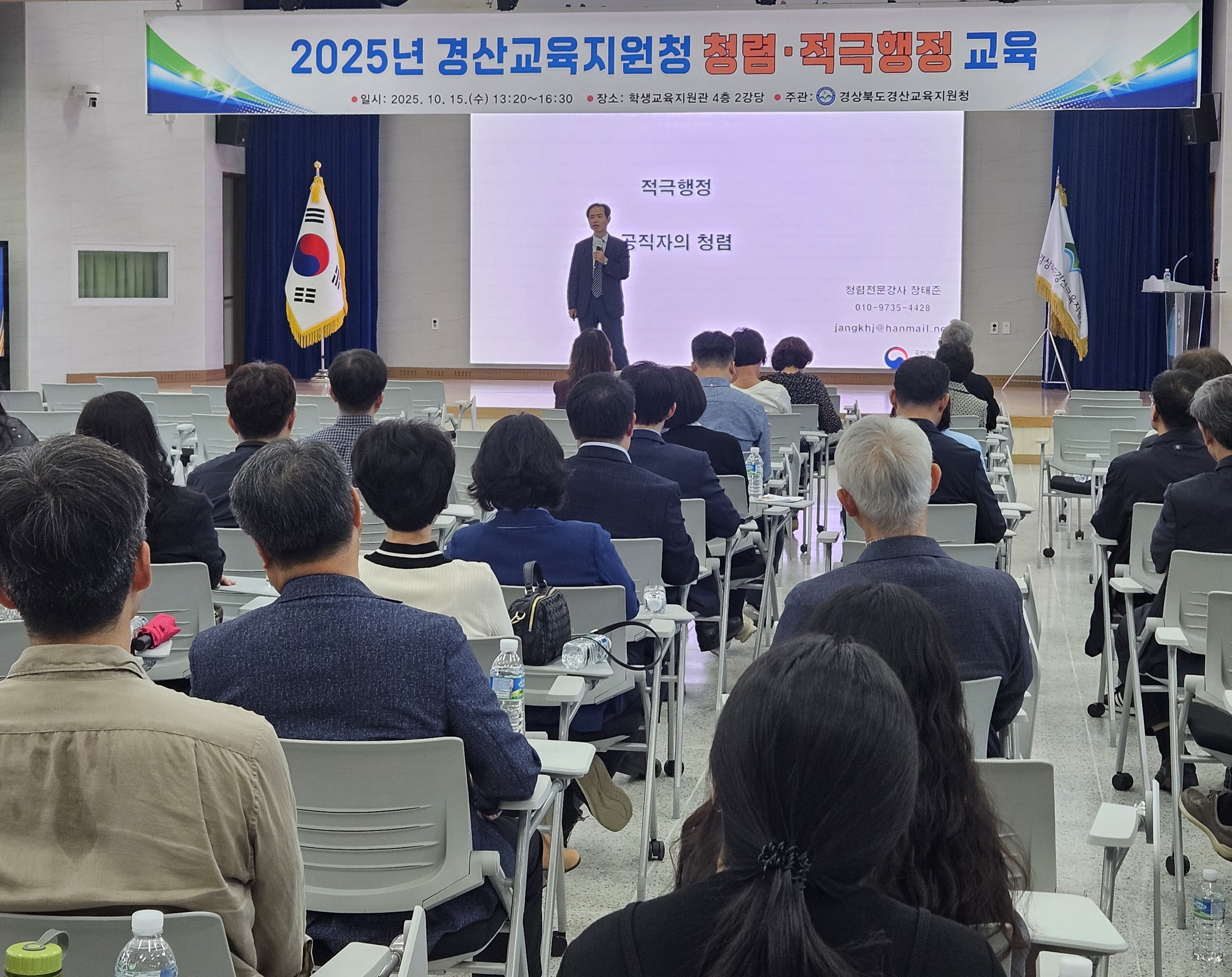 □ 경산교육지원청(교육장 정수권)은 10월 15일(수) 13시 10분부터 경산교육지원청 학생교육지원관 2강당에서 청렴·적극행정 교육을 실시하였다.