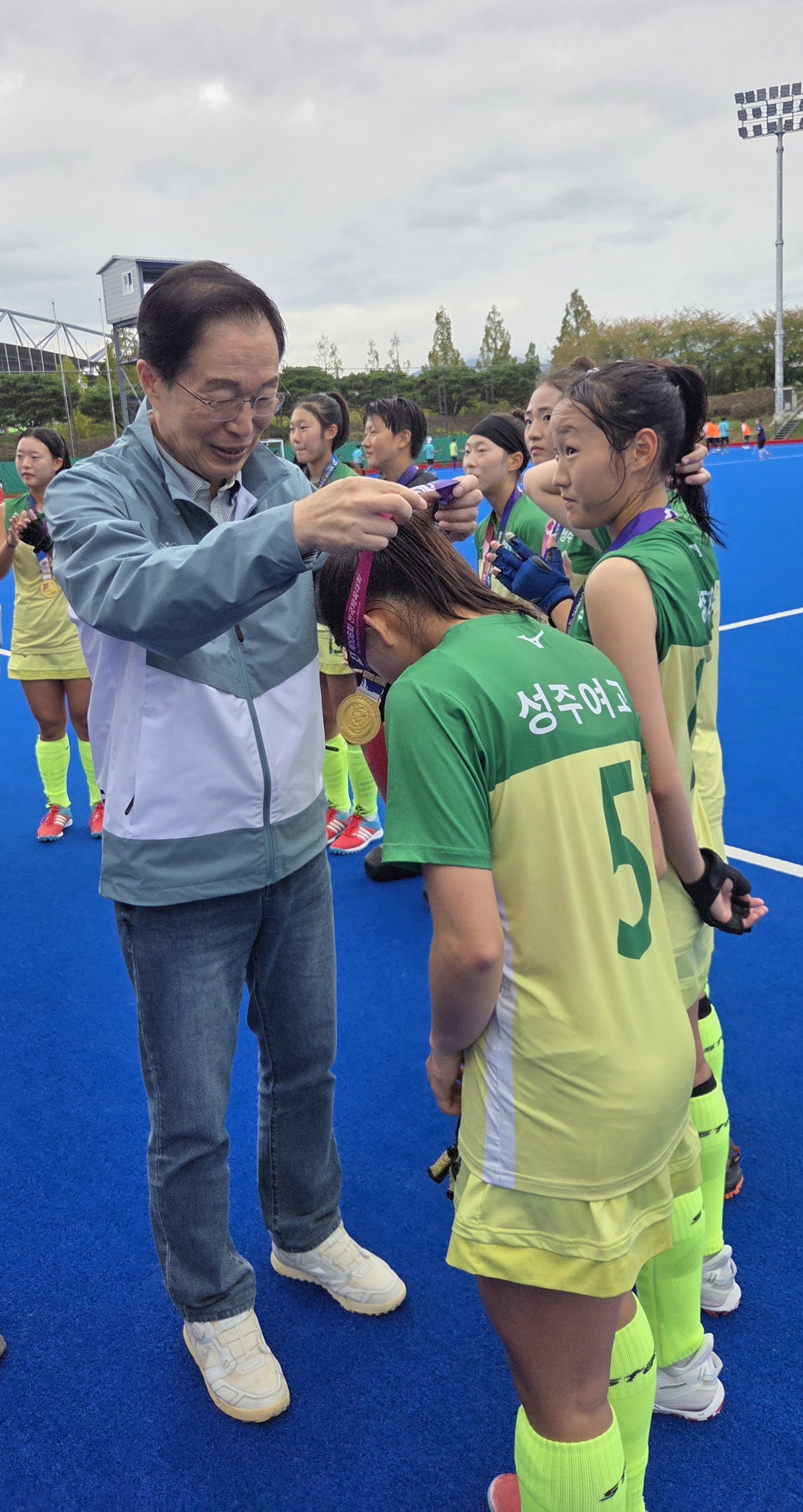 □ 성주여자고등학교 하키부는 작년에 이어 이번 대회에서도 금메달을 차지하여 2연패를 달성하며 관계자들을 놀라게 하였다.
