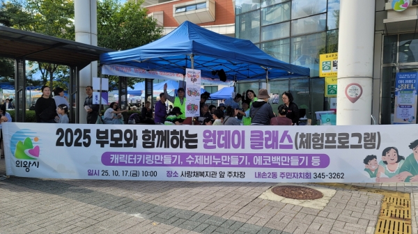 [금요저널] 의왕시 내손2동 주민자치회는 10월 17일 부모와 함께하는 원데이클래스 행사를 주민센터와 사랑채 복지관 앞마당에서 개최했다.